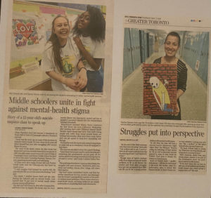 Here is a clipping from the Toronto Star, who interviewed students about ‘Hear the Whisper’, one of the ‘Time 4 change’ career project initiatives that was driven by students’ concern about the growing mental health challenges faced by teens today.
